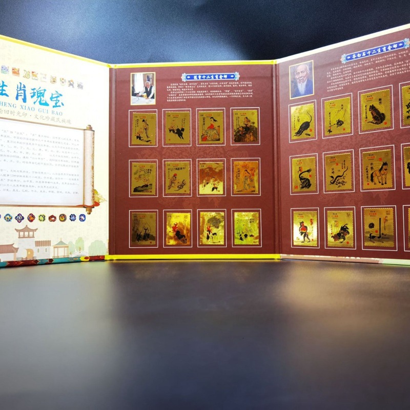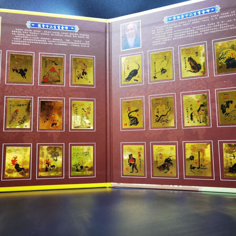 LA098可发样/厂家批发生肖瑰宝齐白石十二生肖金箔纪念册收藏验钞券邮票册