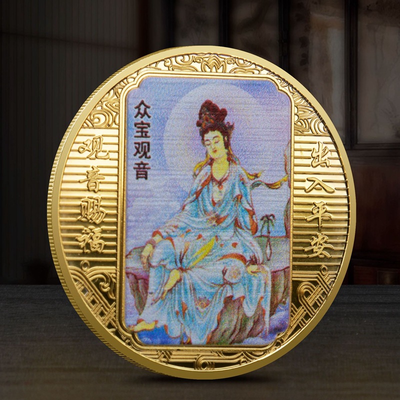 LA098可发样/新款 观音菩萨纪念币 观音赐福富贵吉祥纪念章 佛寺圣地旅游纪念