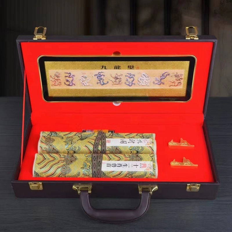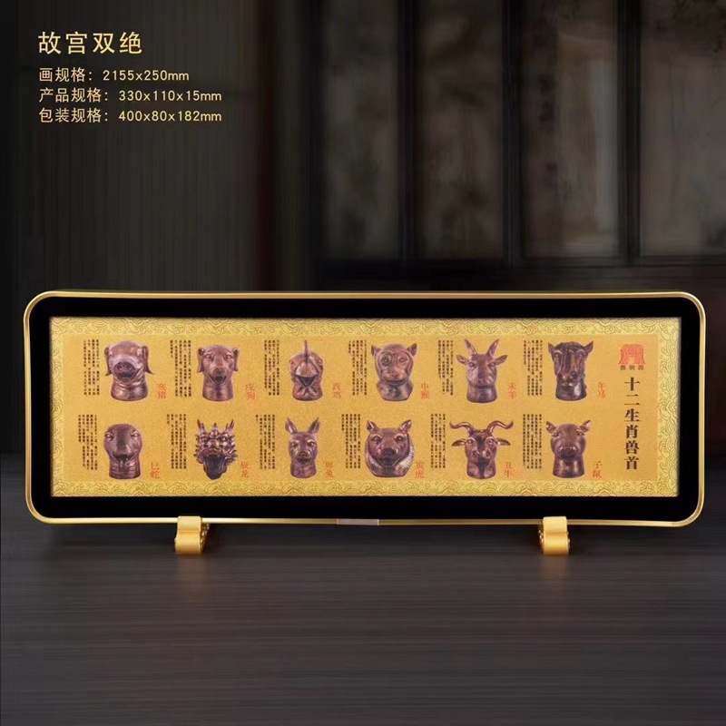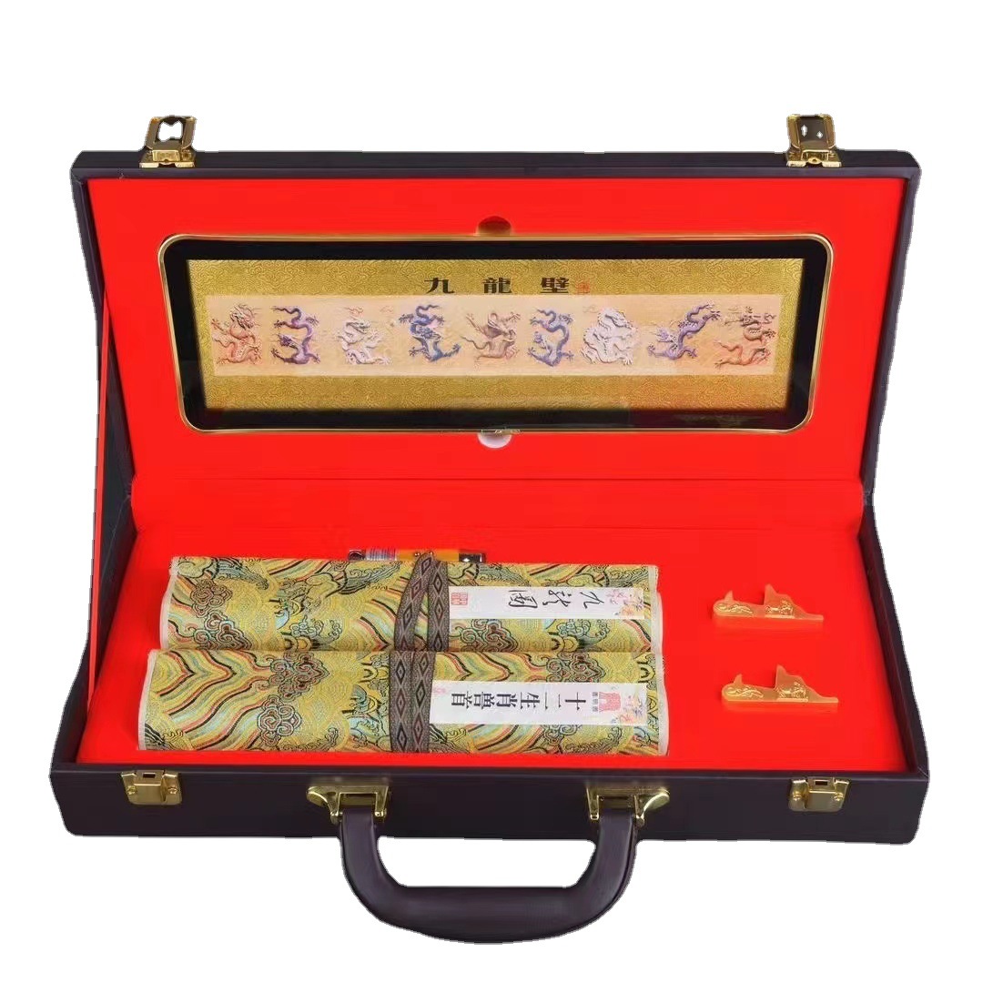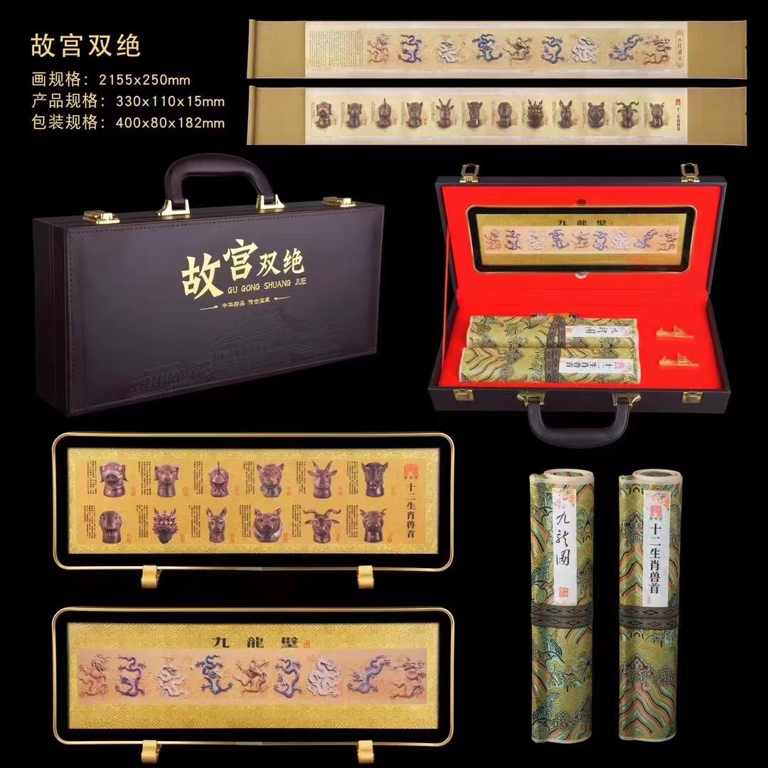 LA098可发样/2023新品故宫双绝工艺品 十二兽首九龙壁摆件丝绸画 会销直播礼品