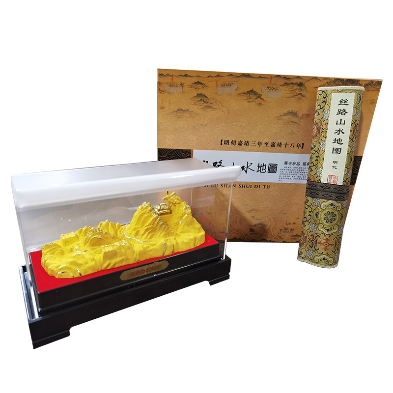 LA098可发样/绒沙金丝路山水地图绒沙金摆件丝绸国画创意礼品纪念保险商务礼品
