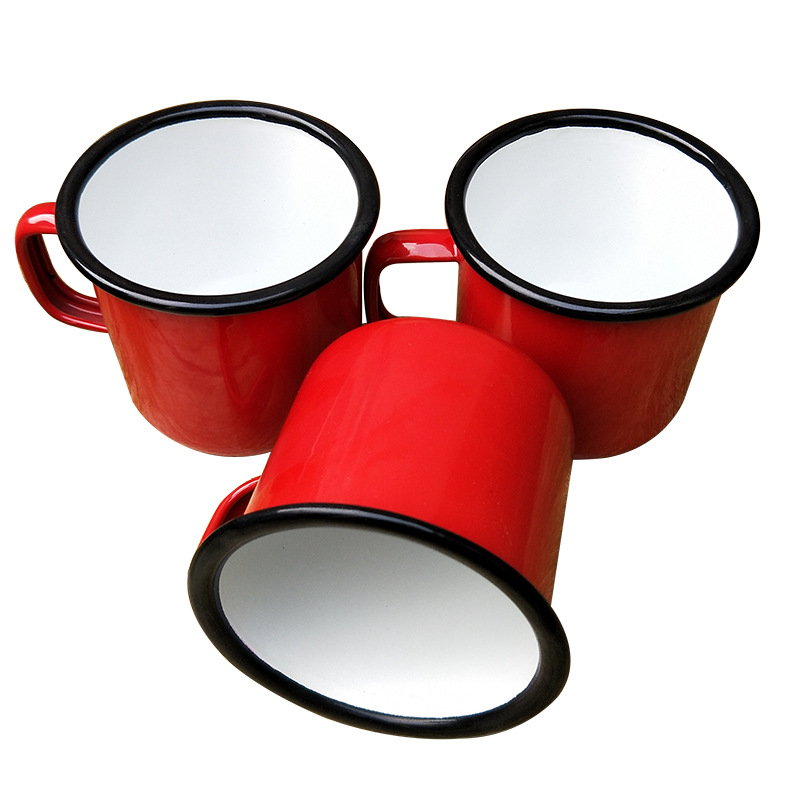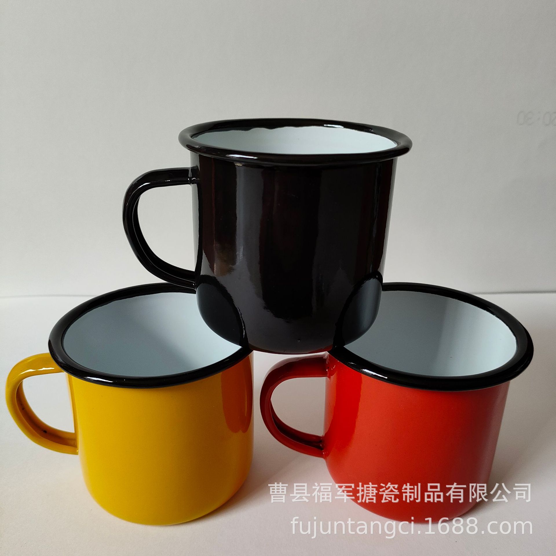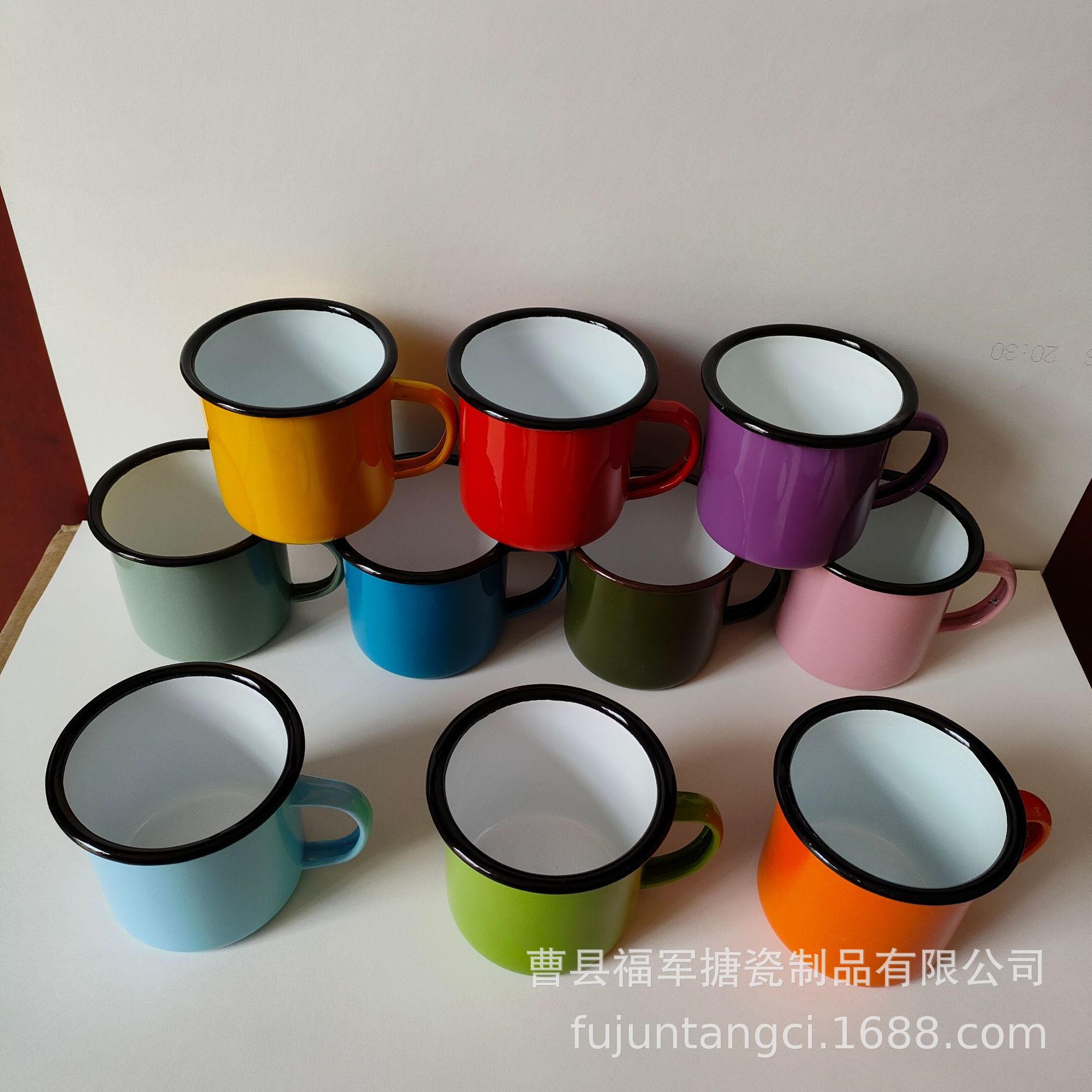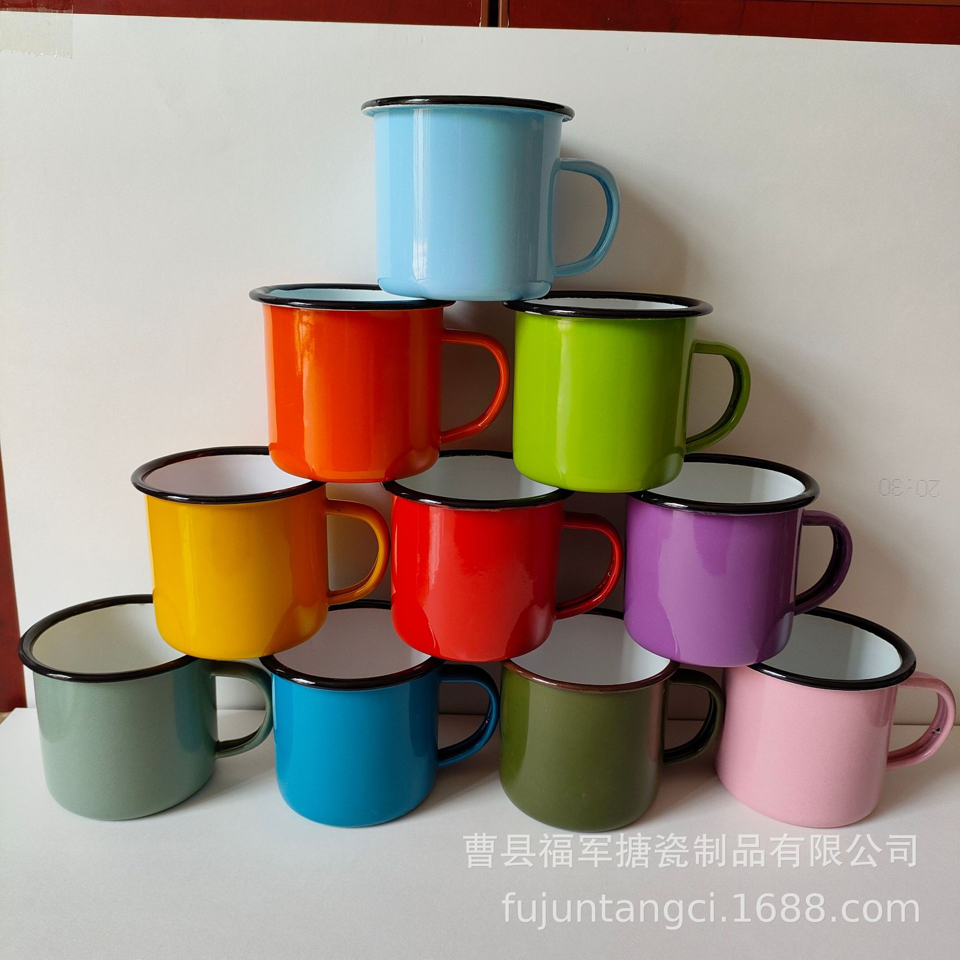 LA535可发样/厂家批发定制搪瓷杯里白外彩珐琅杯加厚卷边铁杯子 马克杯 陶瓷杯
