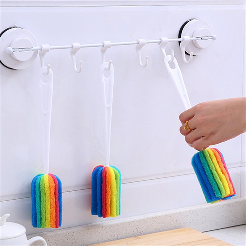 LA771可发样/长柄杯刷 清洁刷 奶瓶刷 七彩百洁布杯刷保温杯刷海绵百洁布刷子