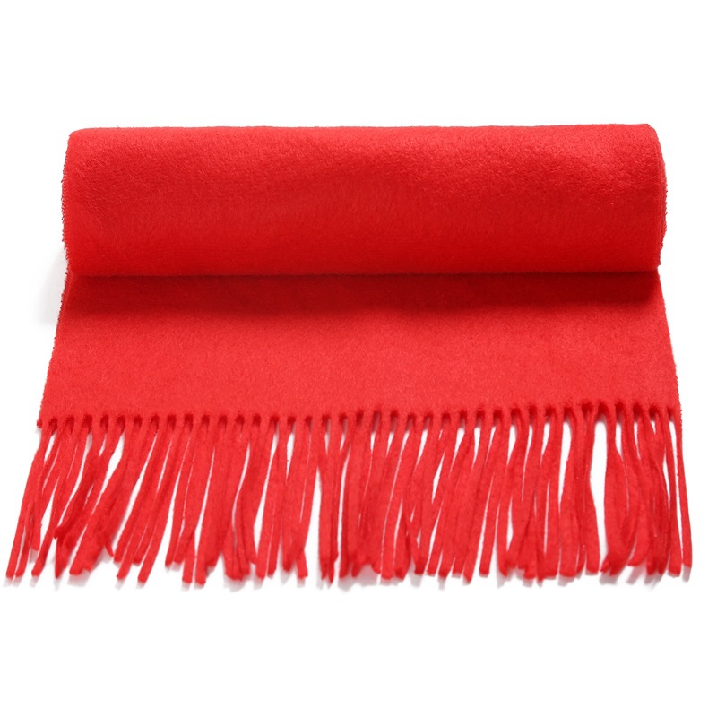 LA103可发样厂家批发会销爆款超柔双面绒细流苏红围巾会销礼品仿羊绒红围巾