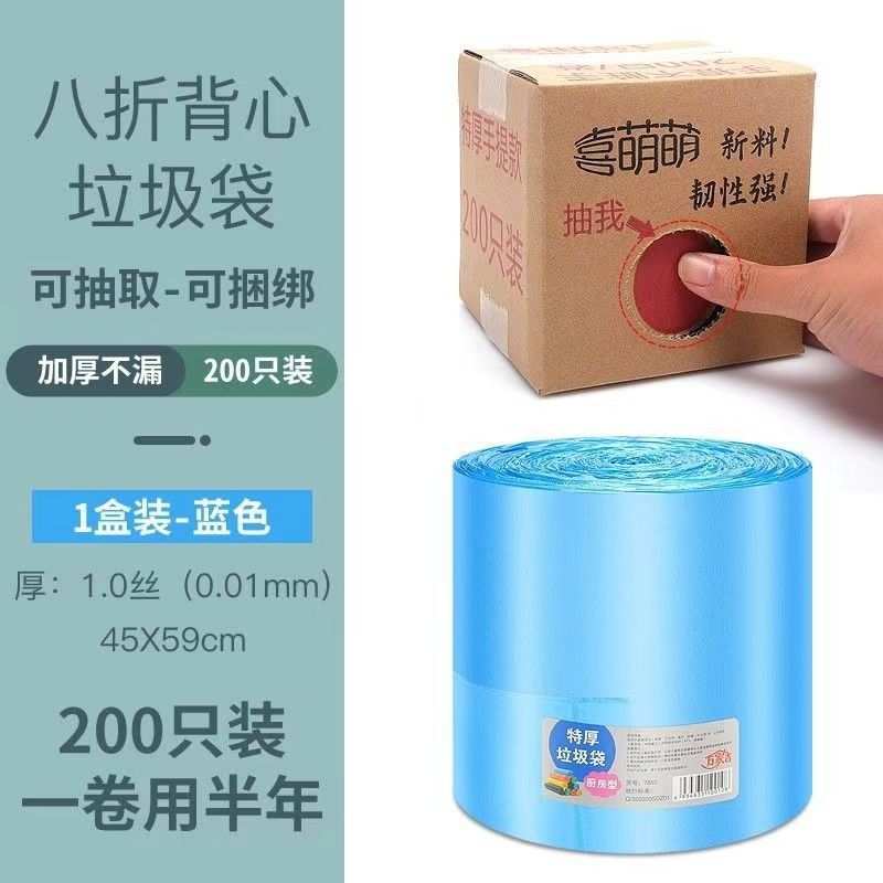 LA771可发样/垃圾袋200只加厚手提式厨房家用大卷一次性背心式抽取式塑料袋盒