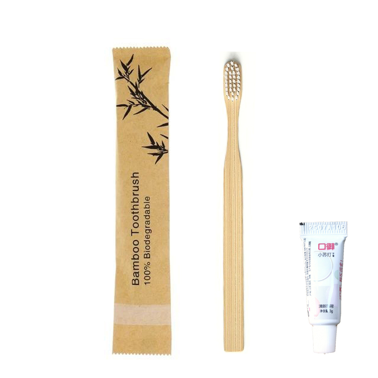 白色竹牙刷+牙膏