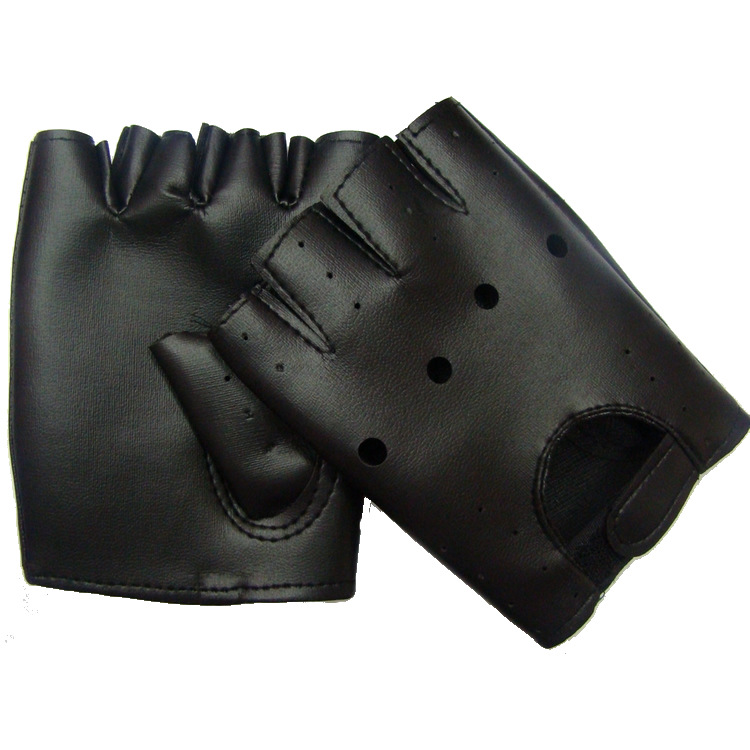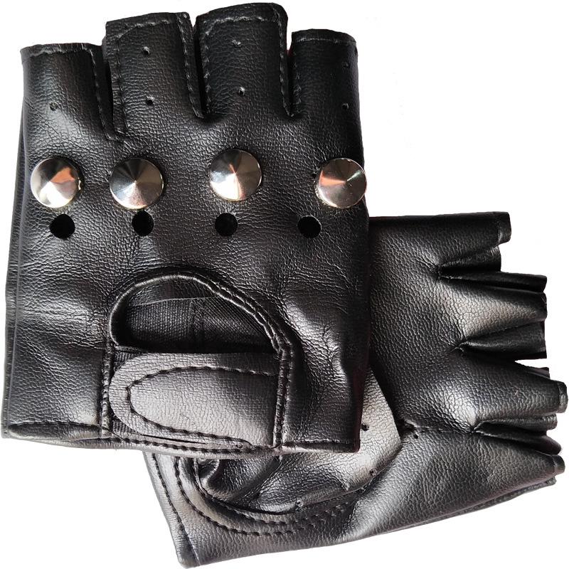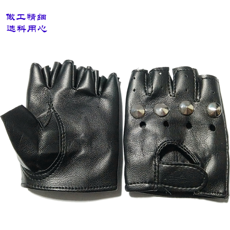 LA103可发样新款热卖小学生表演半指皮手套儿童演出皮手套小孩带铆钉半指手套