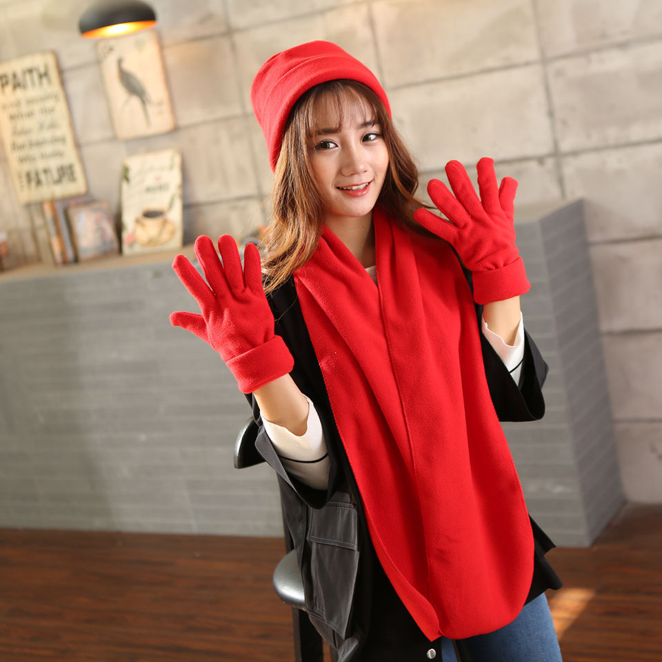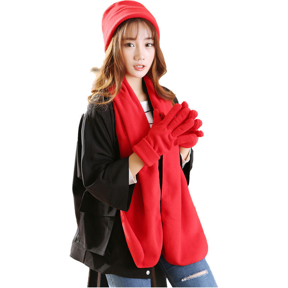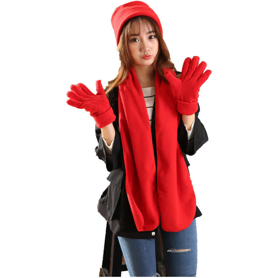 LA103可发样可加LOGO 促销纪念礼品 厂家批发 冬季帽子围巾手套摇粒绒三件套