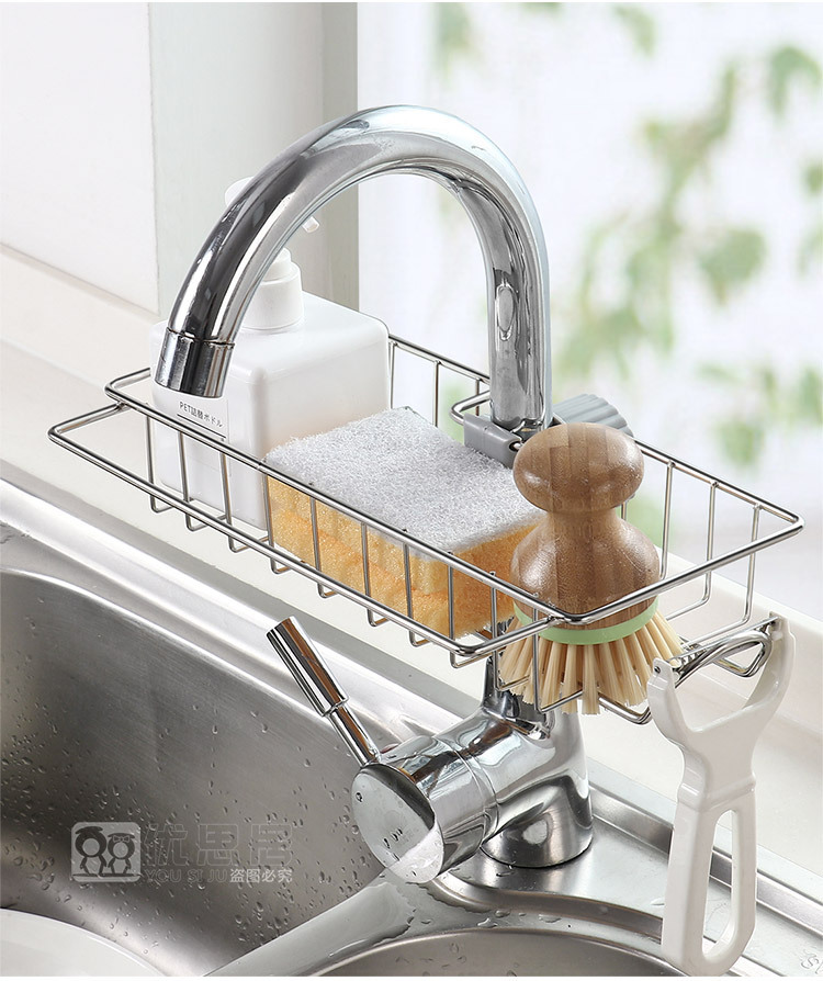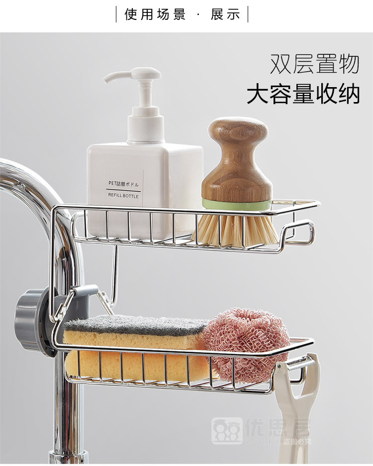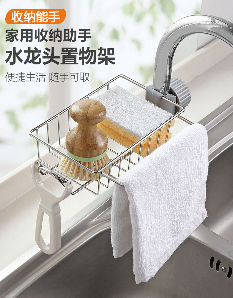 LA714可发样/水龙头置物架厨房不锈钢水槽收纳架家用海绵抹布洗碗沥水架挂篮子