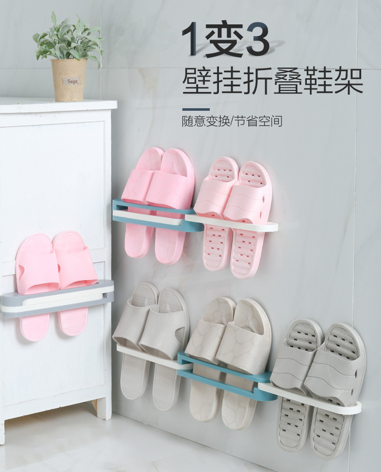 LA714可发样/网红可折叠鞋架 浴室拖鞋沥水架壁挂式免打孔省空间家用简易收纳