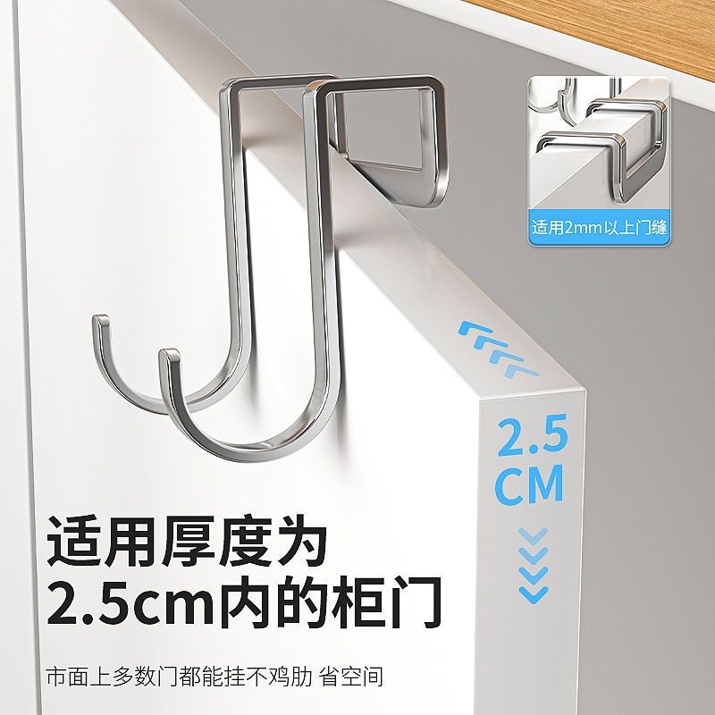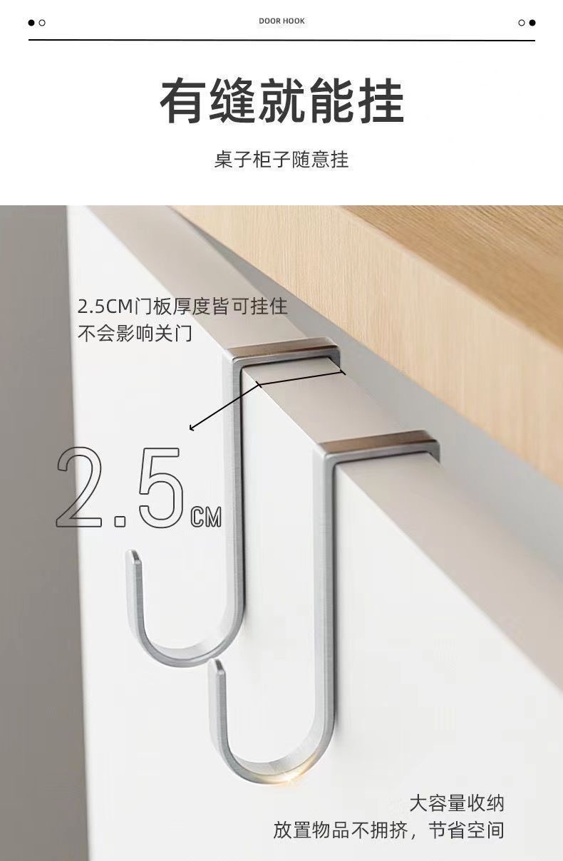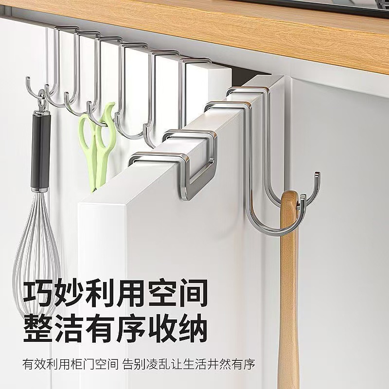 LA714可发样/不锈钢双S型挂钩免打孔门后挂衣钩厨房浴室多功能橱柜门背S钩批发