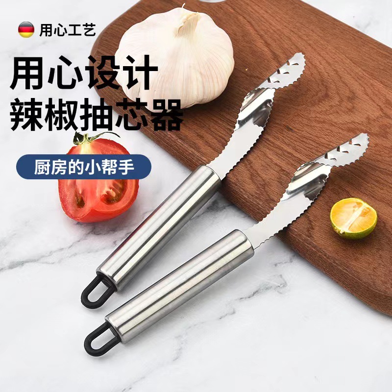 LA714可发样/不锈钢辣椒去芯器挖青椒器厨房西红柿取籽去心器辣椒挖仔器批发