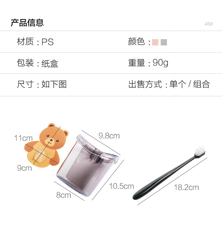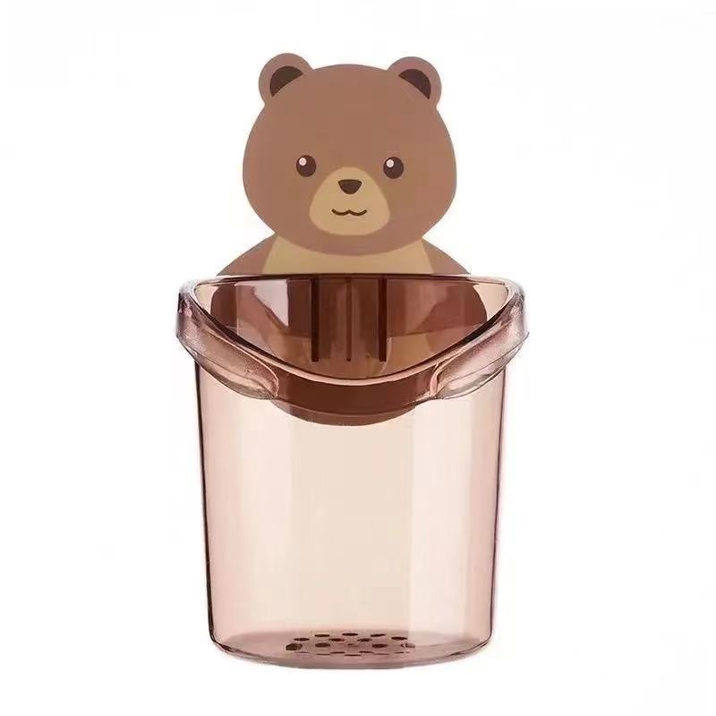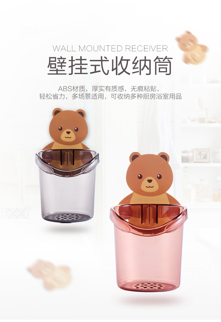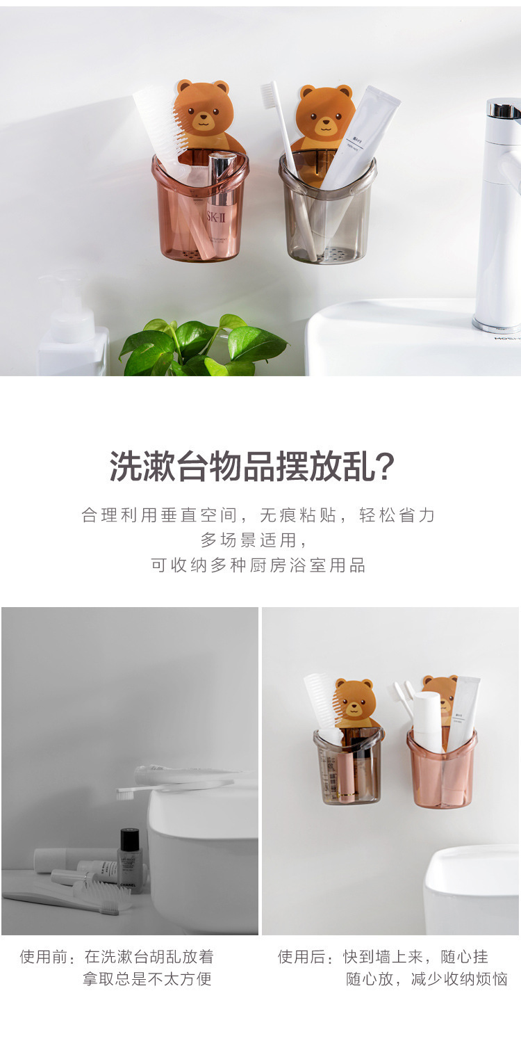 LA714可发样/小熊杯贴墙抱抱置物杯粘贴式收纳挂壁式杯架沥水牙刷架卫生间墙上