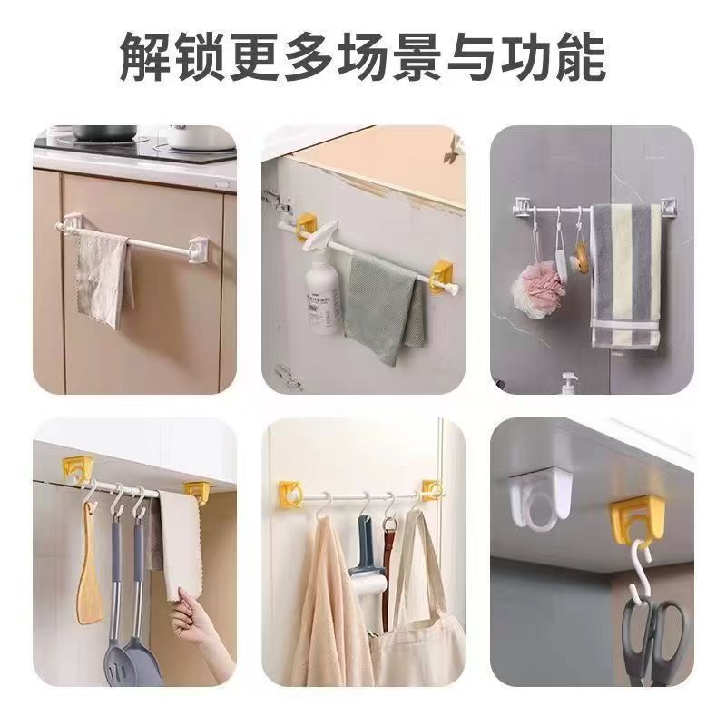 LA714可发样/360旋转挂环升级圆环挂杆托毛巾杆粘钩免打孔窗帘浴帘杆托架支架